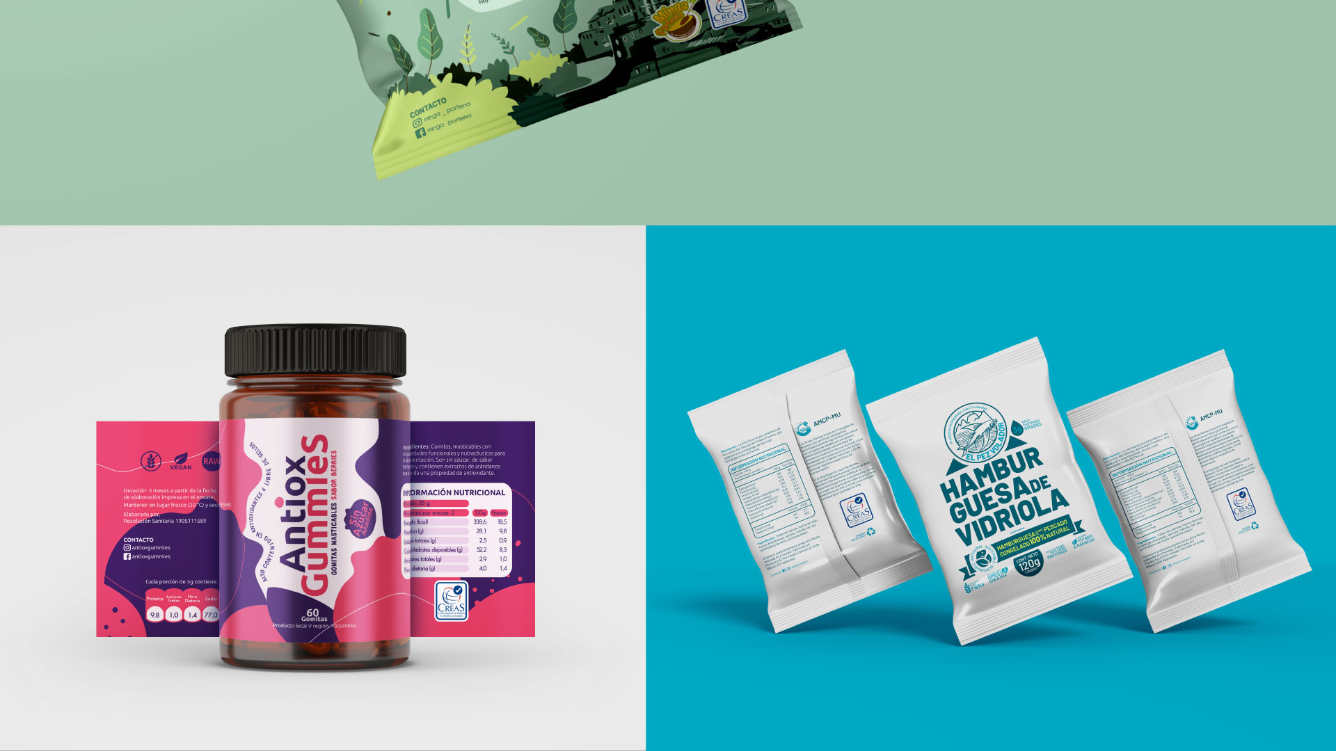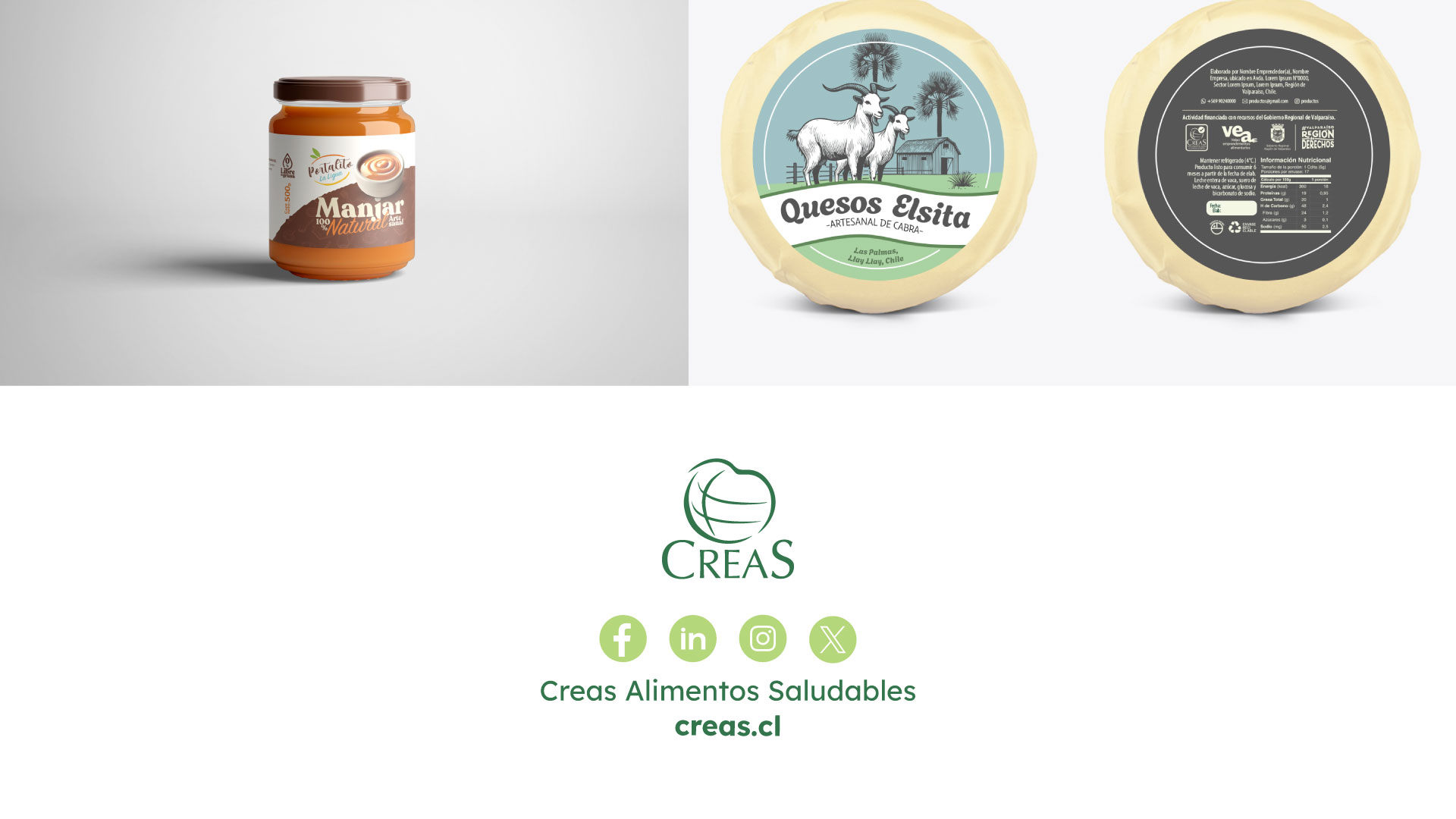 Proyecto de packaging y diseño de etiquetas desarrollado en conjunto con el Centro Regional de Estudios en Alimentos Saludables (CREAS), Valparaíso, enfocado en la creación de una identidad visual clara y atractiva para su línea de productos alimentarios. / Packaging and label design project developed in collaboration with the Regional Center for Healthy Food Studies (CREAS), Valparaíso, focused on creating a clear and attractive visual identity for their food product line. creas.cl
