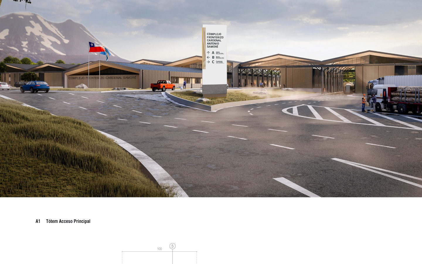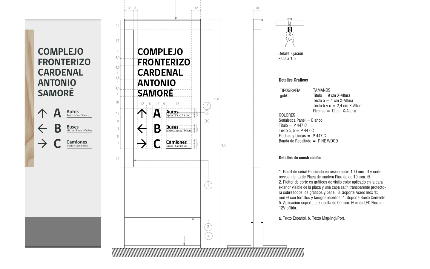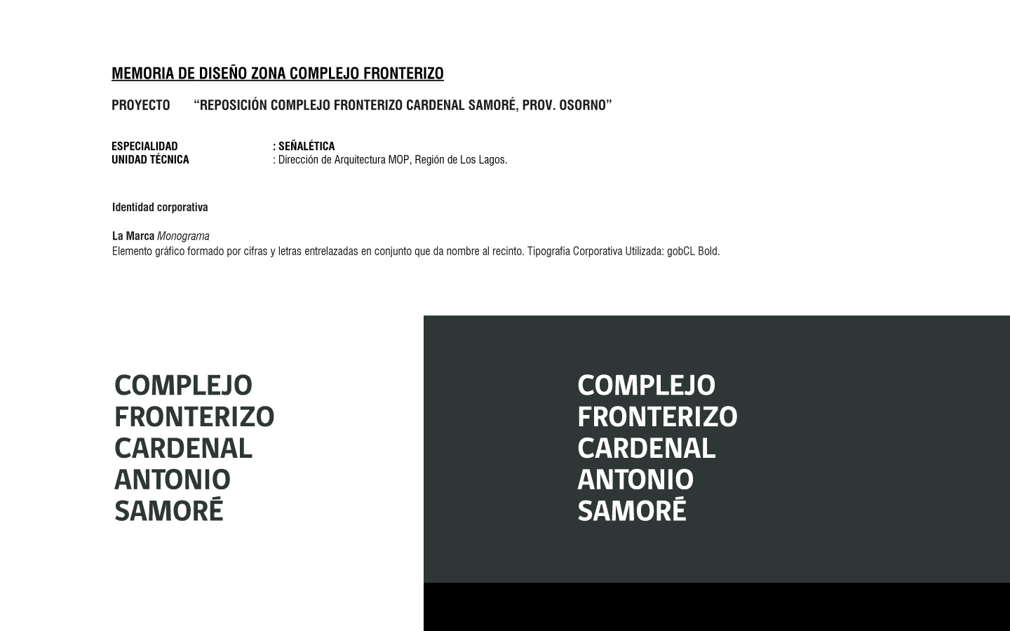 Proyecto de señaletica Complejo Fronterizo Cardenal Antonio Samoré, Provincia de Osorno. | Signage Project for the Cardenal Antonio Samoré Border Complex, Province of Osorno.