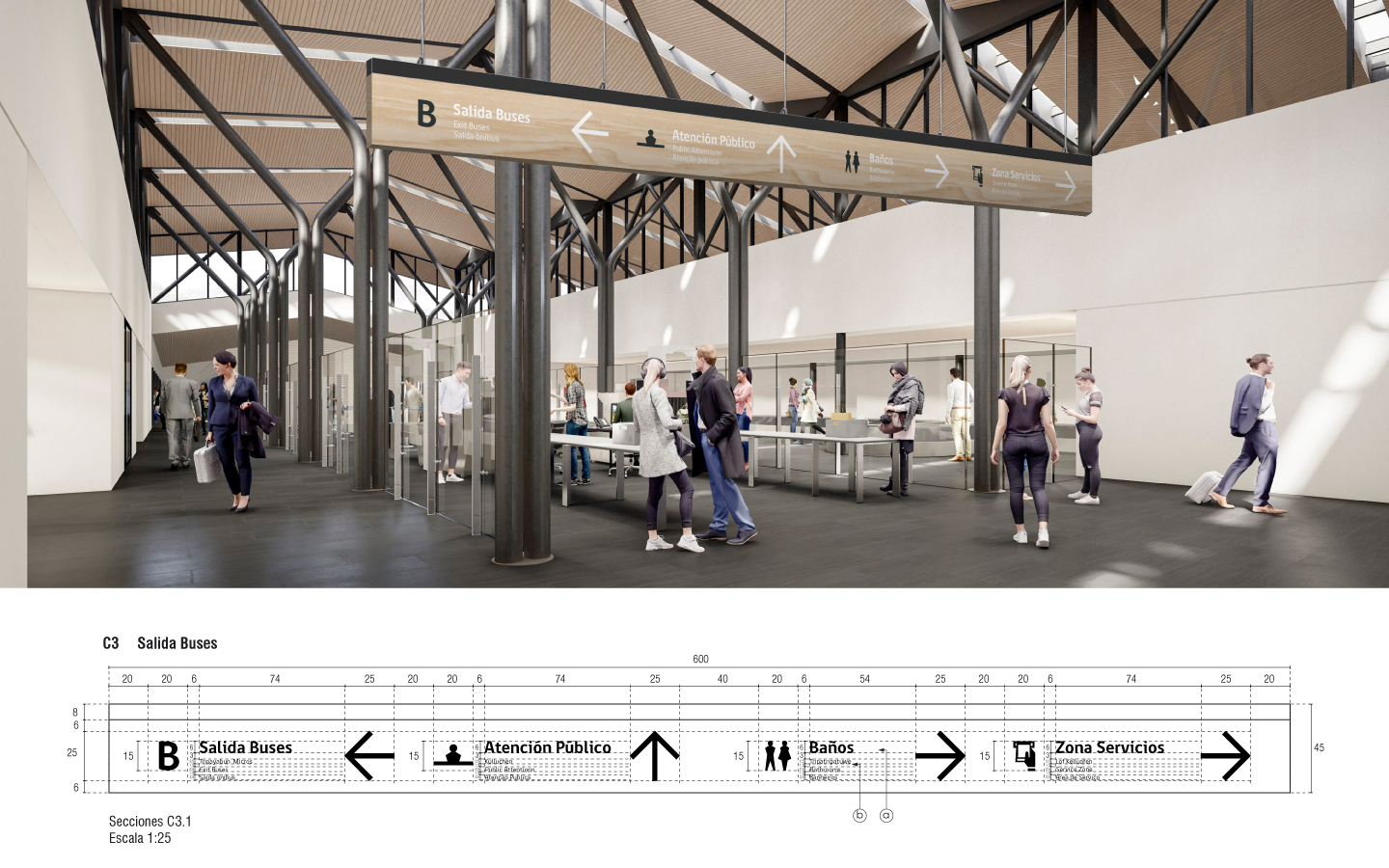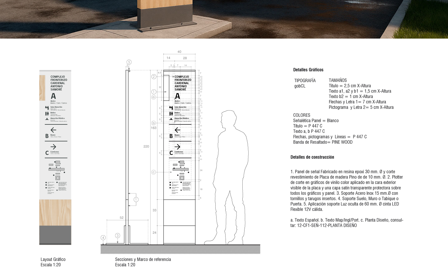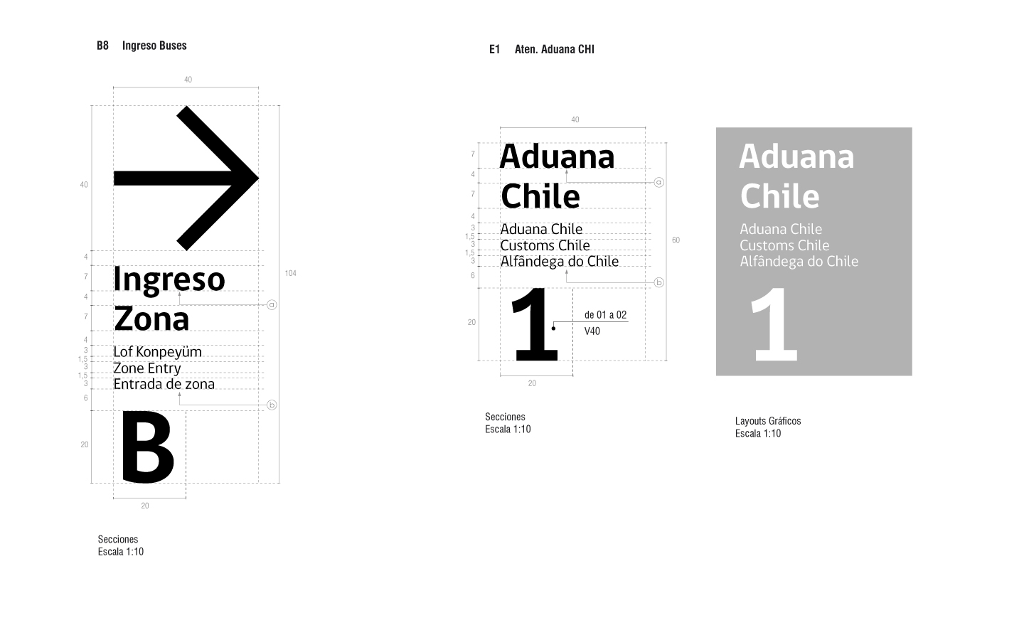 Proyecto de señaletica Complejo Fronterizo Cardenal Antonio Samoré, Provincia de Osorno. | Signage Project for the Cardenal Antonio Samoré Border Complex, Province of Osorno.